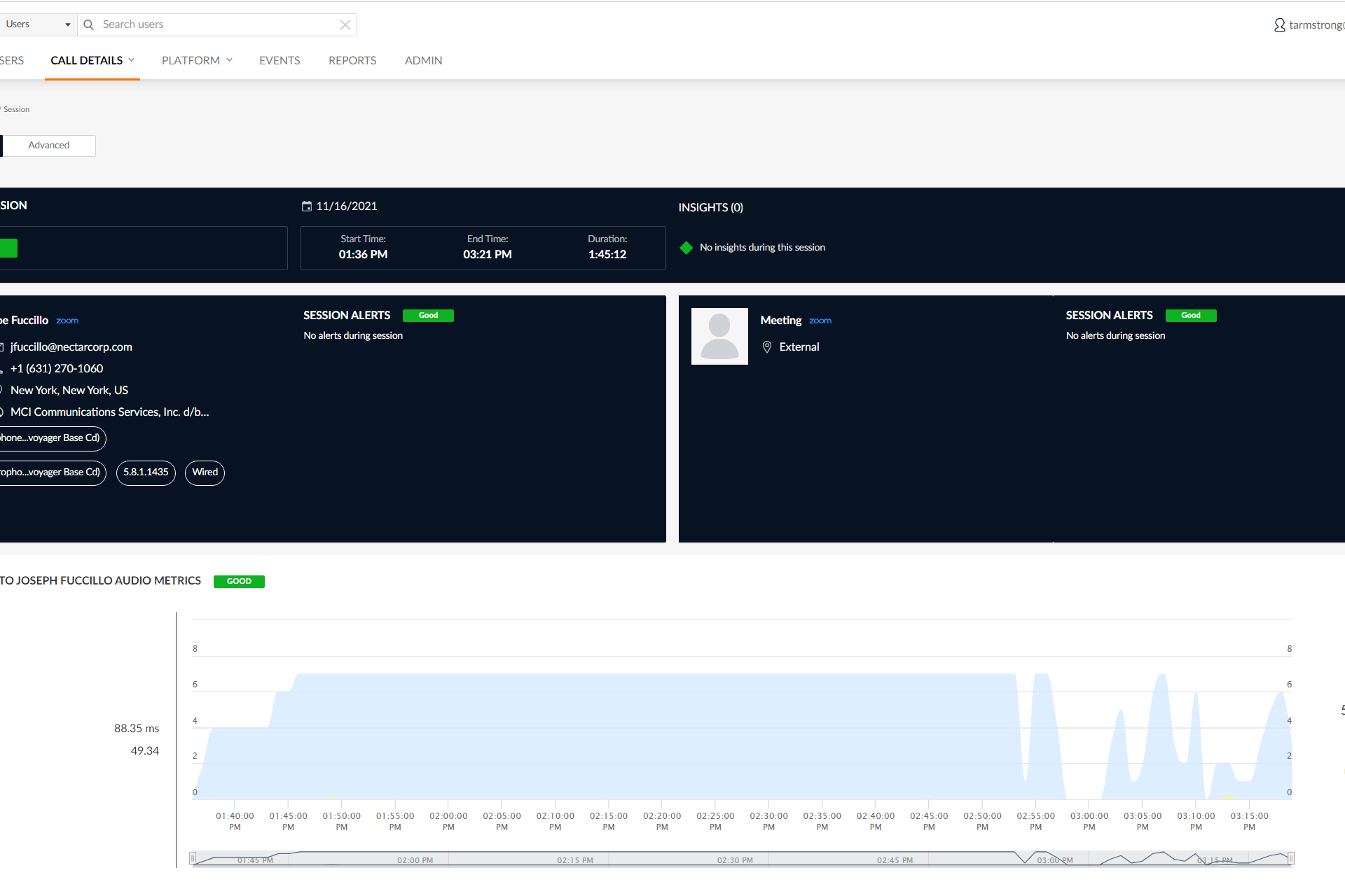 Nectar for Zoom is built on Nectar DX which delivers real-time experience data from the Zoom API that is correlated and enriched with actionable insights and threshold-based alerts. The enhanced telemetry and alerts are presented on Nectar’s intuitive dashboards, received as alerts, or consumed via Nectar’s own API for integrations with ITSM platforms and other enterprise operations tools.